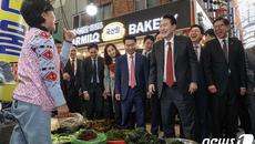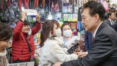 (부산=뉴스1) 부산사진공동취재단 = 윤석열 대통령이 6일 부산 중구 깡통시장을 방문해 부산엑스포 유치활동 노력에 감사하는 부- 2023-12-06 15:15