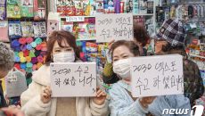 (부산=뉴스1) 부산사진공동취재단 = 6일 부산 중구 깡통시장에서 윤석열 대통령의 방문을 앞두고 부산 시민들이 윤 대통령의 부- 2023-12-06 15:14