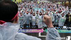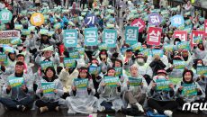 국회 앞에 모인 보건의료노조 '공공의료 후퇴 멈춰라!'