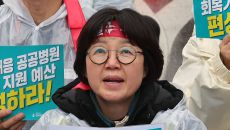 (서울=뉴스1) 김진환 기자 = 나순자 전국보건의료산업노동조합 위원장이 6일 오후 서울 영등포구 여의도 국회 앞에서 열린 결의- 2023-12-06 15:06