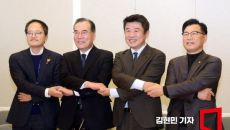 여야 정책위의장과 원내수석부대표가 6일 국회에서 2+2 협의체 첫 회의에 앞서 기념촬영을 하고 있다. 왼쪽부터 더불어민주당 박- 2023-12-06 14:25