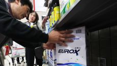 6일 서울 송파구 롯데마트 월드타워점에서 직원이 요소수를 진열하고 있다. 중국 통관이 한국에 대한 차량용 요소 수출을 지연시키- 2023-12-06 14:04