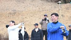 [사진]염경엽 감독-허구연 KBO 총재,'골프 시타'