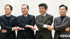 (서울=뉴스1) 임세영 기자 = 더불어민주당 박주민 원내수석부대표(왼쪽부터), 이개호 정책위의장, 국민의힘 유의동 정책위의장,- 2023-12-06 13:53