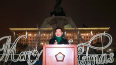 김진표 의장, 국회 성탄트리 점등 "사회 어둠 밝히는 따뜻한 불빛 되도록"