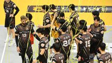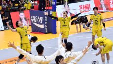 KB 비예나와 선수들이 6일 의정부체육관에서 열린 2023 도드람 V리그 남자부 KB손해보험과 OK금융그룹과의 경기 3세트를- 2023-12-06 20:43
