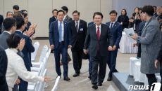 부산시민의 꿈과 도전 격려 간담회 참석하는 윤 대통령
