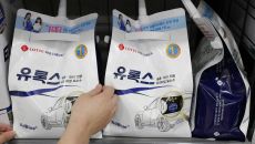 (서울=뉴스1) 박세연 기자 = 6일 서울 송파구 롯데마트 월드타워점에서 직원이 요소수를 진열하고 있다. 중국 통관이 한국에- 2023-12-06 12:59