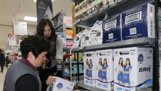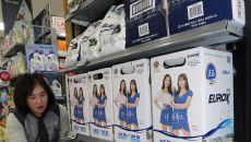 (서울=뉴스1) 박세연 기자 = 6일 서울 송파구 롯데마트 월드타워점에서 직원이 요소수를 진열하고 있다. 중국 통관이 한국에- 2023-12-06 12:58