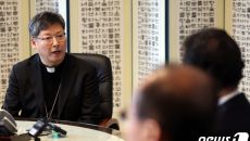 (서울=뉴스1) 김진환 기자 = 정순택 천주교 서울대교구장이 6일 오전 서울 중구 명동 서울대교구청을 방문한 김영호 통일부 장- 2023-12-06 12:53