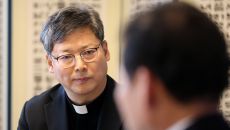 김영호 통일부 장관 발언 경청하는 정순택 교구장