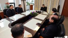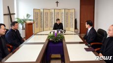(서울=뉴스1) 김진환 기자 = 정순택 천주교 서울대교구장이 6일 오전 서울 중구 명동 서울대교구청을 방문힌 김영호 통일부 장- 2023-12-06 12:52