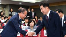 [포토] 악수 나누는 김진표 국회의장과 홍익표 민주당 원내대표