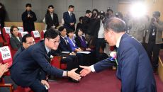 [포토] 악수 나누는 김진표 국회의장과 윤재옥 국민의힘 원내대표