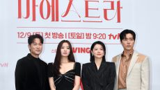 6일 오전 서울 구로구 라마다서울신도림호텔에서 진행된 tvN 토일 드라마 '마에스트라' 제작발표회에서 출연 배우들이 취재진을- 2023-12-06 11:56