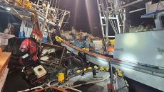 [군산=뉴시스]고석중 기자 = 전북 군산 비응항 인근에서 발생한 충돌 어선과 이 어선을 돕던 같은 선단 어선까지 침수가 발생하- 2023-12-06 11:48