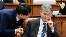 아시아투데이 이병화 기자 = 조희대 대법원장 후보자가 6일 국회에서 열린 인사청문회에서 관계자와 대화를 나누고 있다. ⓒ "젊- 2023-12-06 11:38