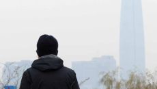전날의 미세먼지가 잔류하고 국외 미세먼지가 유입돼 미세먼지 농도가 '나쁨'을 보인 6일 서울 뚝섬한강공원에서 마스크를 쓴 시민- 2023-12-06 11:25
