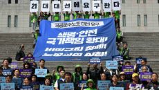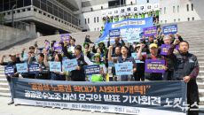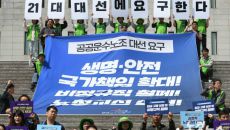 민주노총 공공운수노조가 24일 서울 종로구 세종문화회관 계단에서 대선 요구안 발표 기자회견을 열어 생명·안전 국가책임 확대,- 2025-04-24 13:08