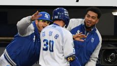 [대구=스포츠조선 박재만 기자] 이렇게까지 반겨주면 홈런 칠 맛 나지. 삼성 라이온즈 외국인 듀오 후라도와 레예스는 등판날이- 2025-04-24 13:04