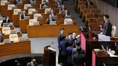 권성동 국민의힘 원내대표가 24일 국회 본회의장에서 열린 한덕수 대통령 권한대행 국무총리 시정연설 후 우원식 국회의장의 발언- 2025-04-24 12:53