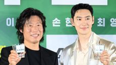 24일 메가박스 코엑스에서 열린 영화 '소주전쟁'의 제작보고회, 이제훈, 손현주가 포토타임을 갖고 있다. 허상욱 기자wook@- 2025-04-24 12:12