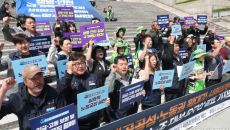 [서울=뉴스핌] 김학선 기자 = 민주노총 공공운수노조가 24일 서울 광화문 세종문화회관 계단에서 "공공성-노동권 확대가 사회대- 2025-04-24 11:59