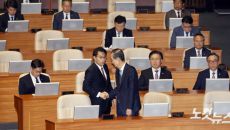 한덕수 대통령 권한대행이 24일 국회 본회의장에서 추가경정예산안 시정 연설을 마친 뒤 이례적인 장면이 펼쳐졌다. 우원식 국회의- 2025-04-24 11:53