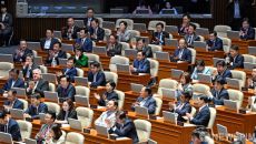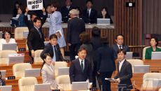[서울=뉴스핌] 윤창빈 기자 = 24일 국회에서 열린 본회의에서 국민의힘 의원들이 한덕수 대통령 권한대행 국무총리의 2025년- 2025-04-24 11:45