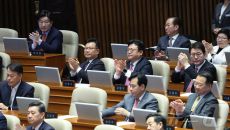 한덕수 권한대행 시정연설에 박수치는 국민의힘