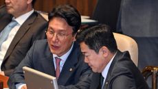 [서울=뉴스핌] 윤창빈 기자 = 권영세 국민의힘 비상대책위원장(왼쪽)과 권성동 원내대표가 24일 국회에서 열린 본회의에서 이야- 2025-04-24 11:45