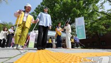 (서울=뉴스1) 신웅수 기자 = 24일 서울 종로구 마로니에 공원에서 열린 종로구 어울누림 축제에서 시민들이 안대를 쓰고 시각- 2025-04-24 11:43