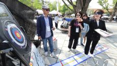 (서울=뉴스1) 신웅수 기자 = 24일 서울 종로구 마로니에 공원에서 열린 종로구 어울누림 축제에서 한 시민이 안대를 쓰고 한- 2025-04-24 11:43