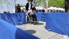 (서울=뉴스1) 신웅수 기자 = 24일 서울 종로구 마로니에 공원에서 열린 종로구 어울누림 축제에서 한 시민이 휠체어 체험을- 2025-04-24 11:43