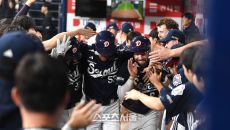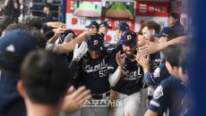 [포토] 김재환, 양석환-케이브와 함께 환호