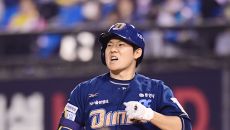 두산 김재환이 24일 서울 고척스카이돔에서 열린 2025 KBO리그 키움과 경기 7회초 2사1,2루 우중월 홈런을 날린 후 선- 2025-04-24 20:40