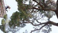 24일 오전 서울 서초역사거리에서 서초구 관계자가 봄을 맞아 차량 매연과 미세먼지로 뒤덮인 향나무 ‘천년향’의 묵은 때를 씻어- 2025-04-24 11:18