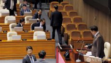 추경 시정연설 마치고 본회의장 나서는 한덕수 권한대행