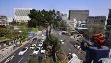 (서울=뉴스1) 김성진 기자 = 서초구 관계자들이 24일 서울 서초역사거리 중앙 녹지대에서 아시아 태평양 사법정의 허브 상징- 2025-04-24 11:10