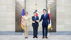 ▲ 제15차 한미일 안보회의(DTT)에서 기념 촬영하는 조창래 국방부 국방정책실장(가운데), 카라 에버크롬비(Cara ABER- 2025-04-24 11:05