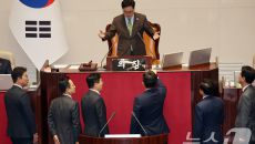 우원식 국회의장 발언에 항의하는 권성동 원내대표