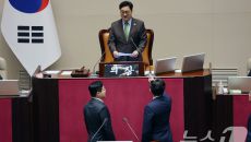 (서울=뉴스1) 이재명 기자 = 권성동 국민의힘 원내대표(오른쪽)가 24일 오전 서울 여의도 국회 본회의장에서 열린 제242회- 2025-04-24 11:04