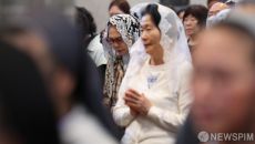 [서울=뉴스핌] 사진공동취재단 =24일 오전 서울 중구 명동대성당에서 거행된 프란치스코 교황 추모 미사에서 참석자들이 기도를- 2025-04-24 11:01
