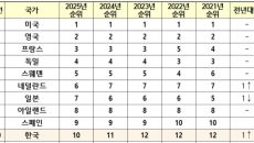 韓, '2025 국제 지식재산 지수' 세계 Top 10 진입… 전년比 1계단 ↑