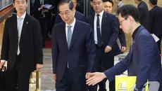 한덕수, 본회의장 나서며 "수고하셨다"