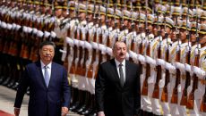 [포토] 의장대 사열하는 시진핑과 알리예프 아제르 대통령