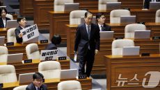 (서울=뉴스1) 이재명 기자 = 한덕수 대통령 권한대행 국무총리가 24일 국회 본회의장에서 추가경정예산안 시정연설을 하기 위해- 2025-04-24 10:33