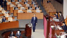 (서울=뉴스1) 이재명 기자 = 한덕수 대통령 권한대행 국무총리가 24일 국회 본회의장에서 추가경정예산안 시정연설을 하기 위해- 2025-04-24 10:33