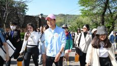 오세훈 서울시장과 참석자들이 함께 걷는 '서울 등산관광센터 관악산점 개관식'