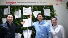 [서울=뉴스핌] 양윤모 기자 =오세훈 서울시장이 24일 오후 '서울 등산관광센터 관악산점 개관식' 행사에서 메세지 퍼포먼스를- 2025-04-24 20:27